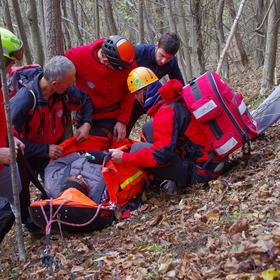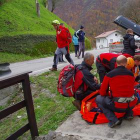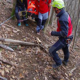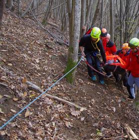 V nedeljo 20.11.2022 je ravno v času nedeljskega kosila s Centra za obveščanje prišel poziv za reševanje. Na Grahovem ob Bači je občanka pri hoji po strmem in blatnem terenu v gozdu pod hišo zdrsnila in si poškodovala nogo. Reševalci smo se hitro zbrali in odhiteli na kraj. Poškodovano nogo smo imobilizirali z vakuumsko opornico in občanko namestili na nosila TSL. Za dvig nosil po strmem in spolzkem pobočju smo uporabili Kongovo vitlo in statično vrv. Na pomoč so nam priskočili tudi vaščani, ki so z motorno žago počistili podrta drevesa in nam olajšali prenos nosil do ceste. Poškodovano občanko je v bolnišnico odpeljal kar njen mož, saj je bilo reševalno vozilo NMP Tolmin v tem času na drugi bolj nujni vožnji.