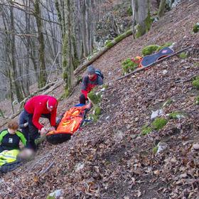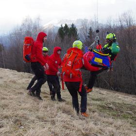 Gorski reševalci smo jo oskrbeli, jo ogrevali in na nosilih TSL ob uporabi vrvne tehnike prenesli na čistino, kjer jo je oskrbela ekipa NMP Tolmin. Za transport smo aktivirali posadko policijskega helikopterja z dežurno ekipo GRS na Brniku. Ta se je morala kar potruditi, da je med močnimi sunki burje z elektromotornim vitlom dvignila ponesrečeno v helikopter ter jo nemudoma prepeljala v UKC Ljubljana.