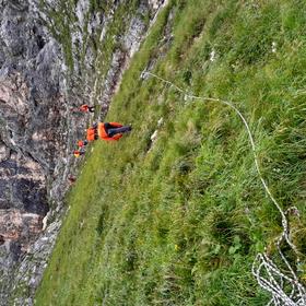 Dežne kaplje nas niso uspele ohladiti, saj smo želeli čimprej doseči kraj nesreče, kjer smo se nato dogovorili o poteku reševanja. Oba najdena smo namestili na nosila. Reševalno moštvo smo razdelili na pol in vsako je prevzelo svoja nosila. Prvi del transporta je potekal s pomočjo vrvne tehnike, po strmem, z mokrimi travami prekritem pobočju, nižje po strmem melišču. Ko je strmina popustila, je vrvno tehniko zamenjala vožnja in prenos z nosili do planine Konjščica. Od tam smo se odpravili z avtomobilom do Rudnega polja, kjer je preminula prevzela pogrebna služba.