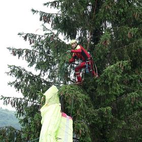 Medtem smo “terenci” na hitro rešili z drevesa madžarskega jadralnega padalca skupaj s padalom, potem pa še odhiteli v pomoč helikopterski ekipi za primer klasičnega reševanja. Na srečo naša pomoč ni bila potrebna. Posadka helikopterja je planinko pripeljala v Tolmin na pristajališče za helikopterje še pred prvimi popoldanskimi nevihtami.