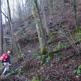 Planinki, ki je sestopala iz Kuka proti Dolenji Trebuši, je na strmem in spolzkem terenu zdrsnilo, da je padla in si poškodovala koleno.
