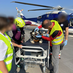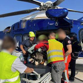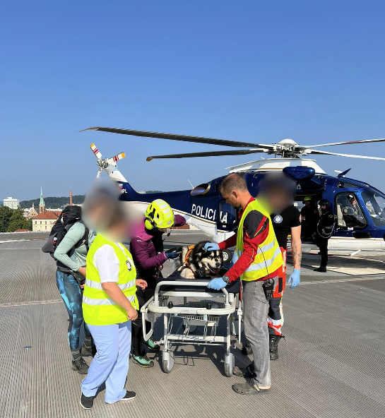 “Lastnici sem ob klicu povedal, naj ima psička iztegnjen jezik, vrat in da naj psička miruje ter da naj se obrne na 112 za pomoč pri transportu. Nekaj minut po tem sem iz regijskega centra za obveščanje Kranj na kliniko prejel klic in pričela se je organizacija prevoza psičke. Psičko in lastnico je iz kraja nesreče pobral helikopter Slovenske policije z dežurno GRZS ekipo z Brnika. Organizirali smo, da je helikopter iz kraja nesreče pristal na heliportu UKC LJ, v vmesnem času smo na kliniki pripravili vse potrebno za njeno primarno oskrb. Organizirali smo reševalno vozilo, ki je iz heliporta poskrbel za prevoz psičke do Klinike za male živali. Že med transportom smo psičko pregledali, ji začeli dovajati infuzijo in zdravila proti bolečinam. Lastnici je bilo omogočeno spremljanje psičke do klinike, psička pa je bila na Kliniki za male živali hospitalizirana na intenzivnem oddelku,” pove Žan Karničar.