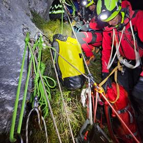 Reševanje je trajalo 17 ur, končali smo 1. oktobra ob 10:00 zjutraj. Na izredno zahtevni intervenciji je na terenu sodelovalo 7 reševalcev GRS Bovec, vojaški helikopter z dežurno ekipo na Brniku, še štirje reševalci pa so bili pripravljeni v dolini za morebitno pomoč. Hvala posadki helikopterja za izjemno opravljeno delo! Velika zahvala tudi navezi, fantoma, ki sta nam celo noč brezkompromisno pomagala pri reševanju.