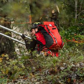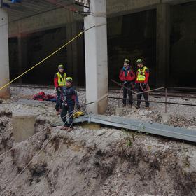 Naloga gorskih reševalcev je transport, delno tudi oskrba ponesrečenih. Odločimo se za namestitev vrvne žičnice, določimo vodjo, ki je obenem vez s štabom, ter vodji obeh sidrišč. Zaradi obilnih padavin v preteklih dneh, del predvidenega scenarija odpade, Sava je močno deroča in narasla. Onemogočen je tudi prevoz reševalcev s čolnom do mesta za izdelavo pasivnega sidrišča. Za dostop zato koristimo gradbišče kolesarske steze in železniško progo. Z desnega na levi breg s »pnevmatskim topom« izstrelimo tanjšo vrvico, ki nam je v pomoč pri vleki vseh potrebnih vrvi za izdelavo žičnice. Pasivno sidrišče izdelamo na betonskem stebru železniške galerije. Na desnem bregu, visoko v bukev, ki je tik nad gladino vode, namestimo premostitvene elemente, sidrišča pa uredimo na stebričkih cestnih, zaščitnih ograj ter na platišču in vlečni kljuki terenskega vozila. S tem manevrom pridobimo na višini žičnice ter prostoru za napenjanje vrvi. Za pomoč pri montaži potrebujemo lestve, ki nam jih priskrbijo gasilske enote. Gasilci očistijo tudi grmičevje in požagajo moteče veje na bukvi.