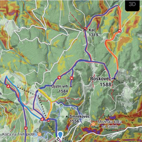 Dolžina celotne proge 15,2km, skupni vzpon 1.411m. Trasa je označena v foto galeriji.