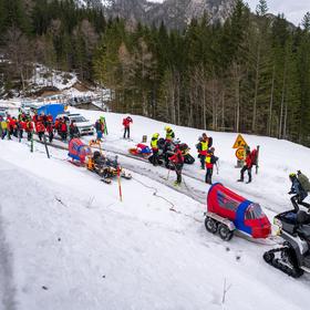 I watch in surprise as some rescuers step out of their vehicles already fully geared up, harnesses on and equipment dangling from their belts. Well, Villach isn’t far from Kranjska Gora, so maybe they can tolerate the ride in full kit. Or perhaps that’s just their standard procedure when leaving base?